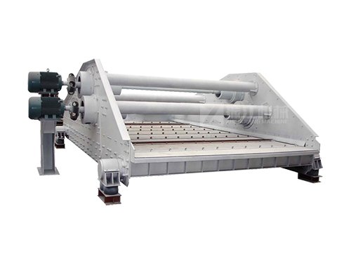 GPS高频筛采用双振源设计,激振器做同步反向运转,两组偏心质量产生的离心力沿振动方向的分力叠加,反向离心抵消,从而形成单一的沿振动方向的振动,使筛箱做作往复直线运动。设备整机水平安装,而筛面安装倾角多为负值,延长了物料在筛面的停留时间,从而提高了脱水或分级效果。