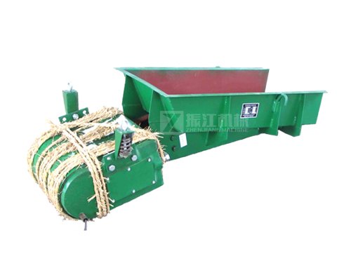 电磁振动给料机的给料过程是利用电磁振动器驱动给料槽沿倾斜方向周期往复运动来实现的,当给料机振动的加速度垂直分量大于重力加速度时,槽中的物料将被抛起,并按照抛物线的轨迹向前进行跳跃运动,抛起和下落在1/5秒内完成,料槽每振动一次槽中的物料被抛起向前跳跃一次,这样槽体以每分钟3000次的频率振动,物料相应地被抛起向前跳跃,使物料均匀连续向前移动,实现给料。